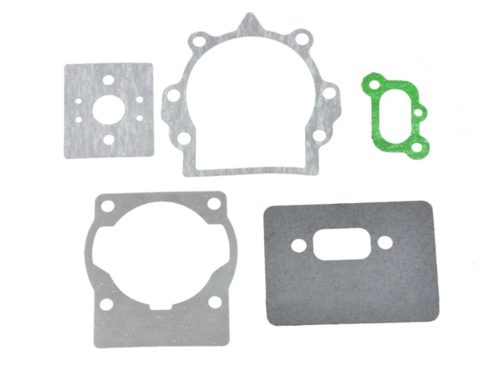 Sada těsnění a podložek určená pro opravy a údržbu benzínových vyžínačů a křovinořezů. Všechny součásti jsou vyrobeny z kvalitních materiálů odolných vůči palivům a vysokým teplotám, což zajišťuje dlouhou životnost a spolehlivý provoz motoru.