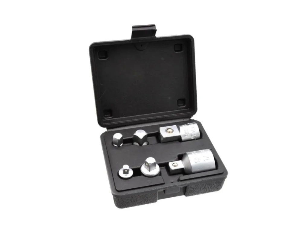 Praktická sada redukcí vyrobená z odolné chrom-vanadiové oceli (CrV), ideální pro přizpůsobení nářadí s různými velikostmi pohonů.