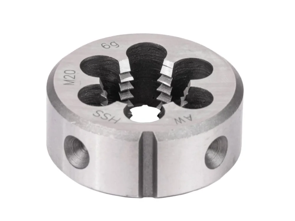 Závitové očko vyrobené z rychlořezné oceli HSS M2 o tvrdosti 65\\u00B0 HRC (+/- 1\\u00B0) pro vytvoření závitu. Očko je určeno k řezání vnějších pravých metrických závitů. Závit se vytvoří jedním přechodem.
