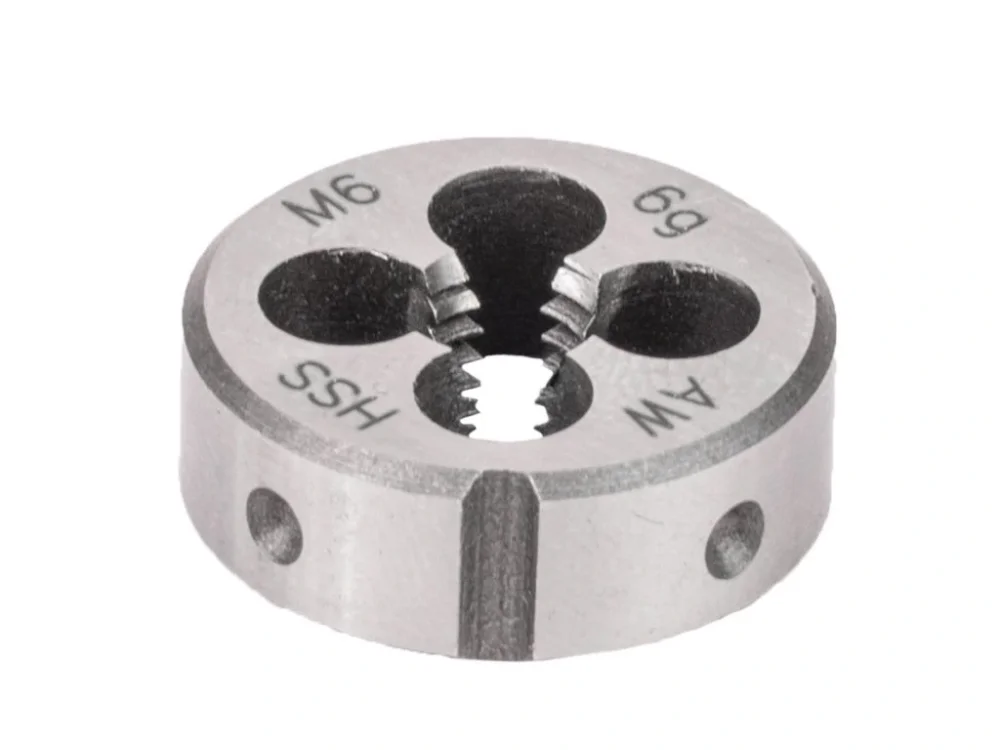 Závitové očko vyrobené z rychlořezné oceli HSS M2 o tvrdosti 65\\u00B0 HRC (+/- 1\\u00B0) pro vytvoření závitu. Očko je určeno k řezání vnějších pravých metrických závitů. Závit se vytvoří jedním přechodem.