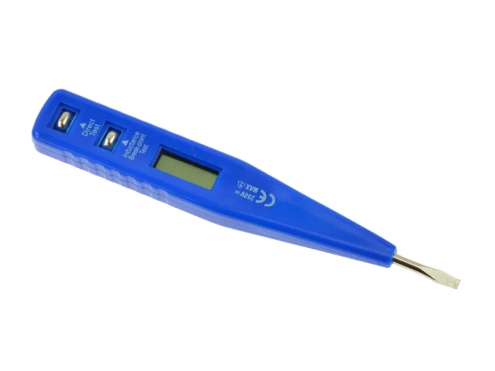 Indukční zkoušečka pro detekci napětí. Tester napětí navržen pro práci s napětím 12-250 V, pro detekci napětí v zásuvkách. Světelný indikátor přítomnosti napětí. 3 mm plochá čepel. Celková délka 135 mm. Navíc je vybaven ergonomickou sponou na opasek.