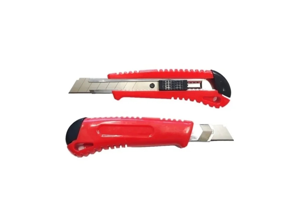 Vysouvací odlamovací nůž je plastovou rukojetí. Tvarovaná a vroubkovaná rukojeť pohodlně padne do ruky a práce s nožem bude jednodušší. Přesné vedení čepele zajišťují kovová vodítka. Odlamovací čepele jsou dlouhé 18mm a vyrobeny z oceli s označením SK5. Automatická pojistka čepele zaručuje, že se nůž při práci sám nezasune do rukojeti. Díky své ostrosti je nůž vhodný pro řezání koberců, gumy, tapet, papíru, kartonu a jiných obalových materiálů.