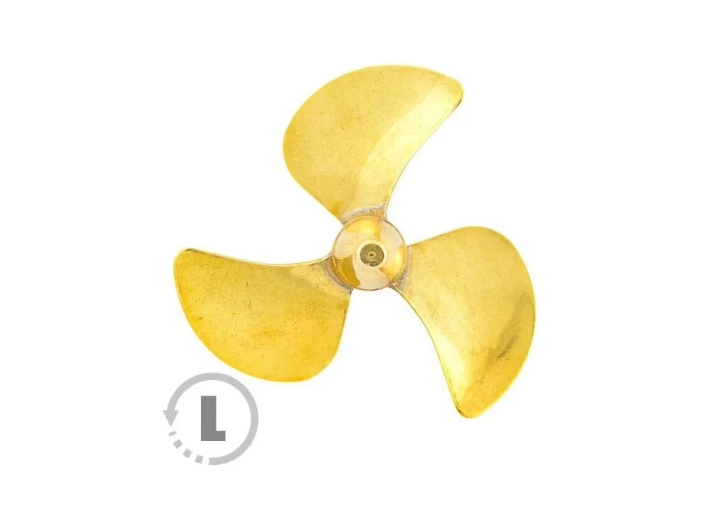 Raboesch lodní šroub tř.160 3-listý, průměr 55mm, směr otáčení levý, montáž na hřídel se závitem M4, materiál mosaz pájená stříbrem.