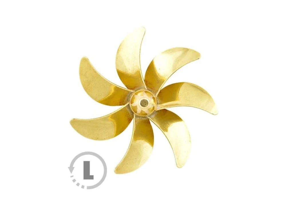 Raboesch lodní šroub tř.185 7-listý, průměr 70mm, směr otáčení levý, montáž na hřídel se závitem M4, materiál mosaz pájená stříbrem.
