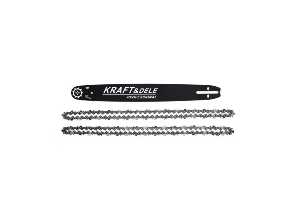 Vodicí lišta 18\\“/45cm + 2 řetězy KD10153 pro motorovou pilu. Vyrobena z odolného materiálu a odolná vůči vysoké teplotě a oděru. Ideální pro univerzální použití v lesnictví a zemědělství a pro příležitostné uživatele. Sada obsahuje vodíci lištu a dva řetěze. Vodící lišty vhodné pro řetězové pily mnoha značek, včetně Stihl, Husqvarna, Alpina, Kraft&Dele a mnoha dalších pracujících s 3/8 řetězy a šířkou vodicího článku 1,5 mm.