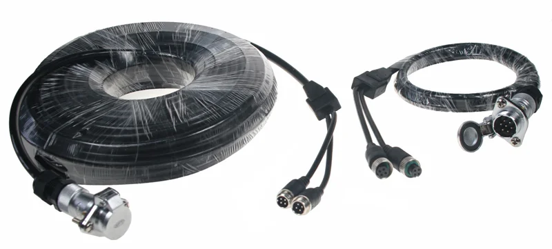 Kabelový video set 4pin, 10m + 5m pro 2 kamery umožňuje přenést video signál ze dvou kamer pomocí dvou 4pinových konektorů. Kabely mají velké konektory (7 pinů) na propojení s kroucenými kabely svkab742, svkab743 nebo svkab744