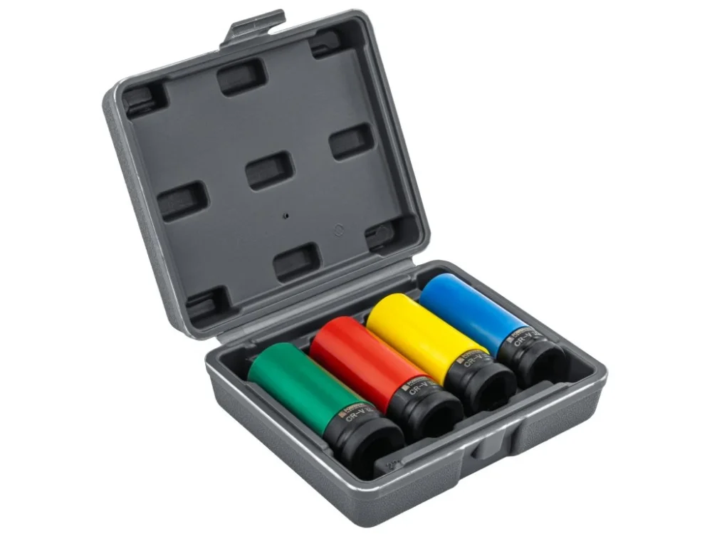 Sada rázových hlavic Powermat PM-ZNU-1722T je ideálním řešením pro profesionální i domácí použití v autoservisech a pneuservisech. Obsahuje čtyři nejpoužívanější rozměry (17 mm, 19 mm, 21 mm a 22 mm), které pokrývají většinu aplikací při práci s hliníkovými i ocelovými disky. Hlavice jsou vyrobeny z odolné chrom-vanadiové oceli (CR-V) a vybaveny ochrannými plastovými vložkami, které zabraňují poškrábání a poškození lakovaných povrchů. Celý komplet je uložen v praktické plastové kazetě pro snadné skladování a přepravu.