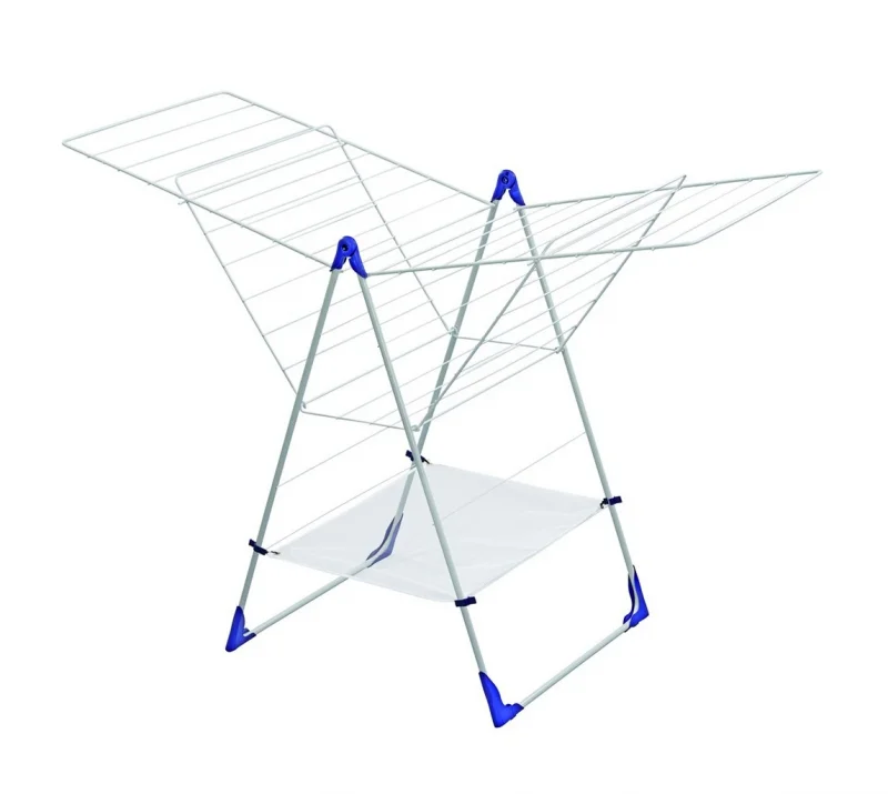 praktický sušák na prádlo, tyče potažené plastovým pláštěm, 25 m sušící plochy = až 2,5 pračky prádla, individuálně nastavitelná výška sklápěcích bočnic až do 140 cm, možnost zavěšení dlouhých kusů oděvů, včetně síťky na sušení jemného prádla ve spodní části sušáku, záruka 3 roky